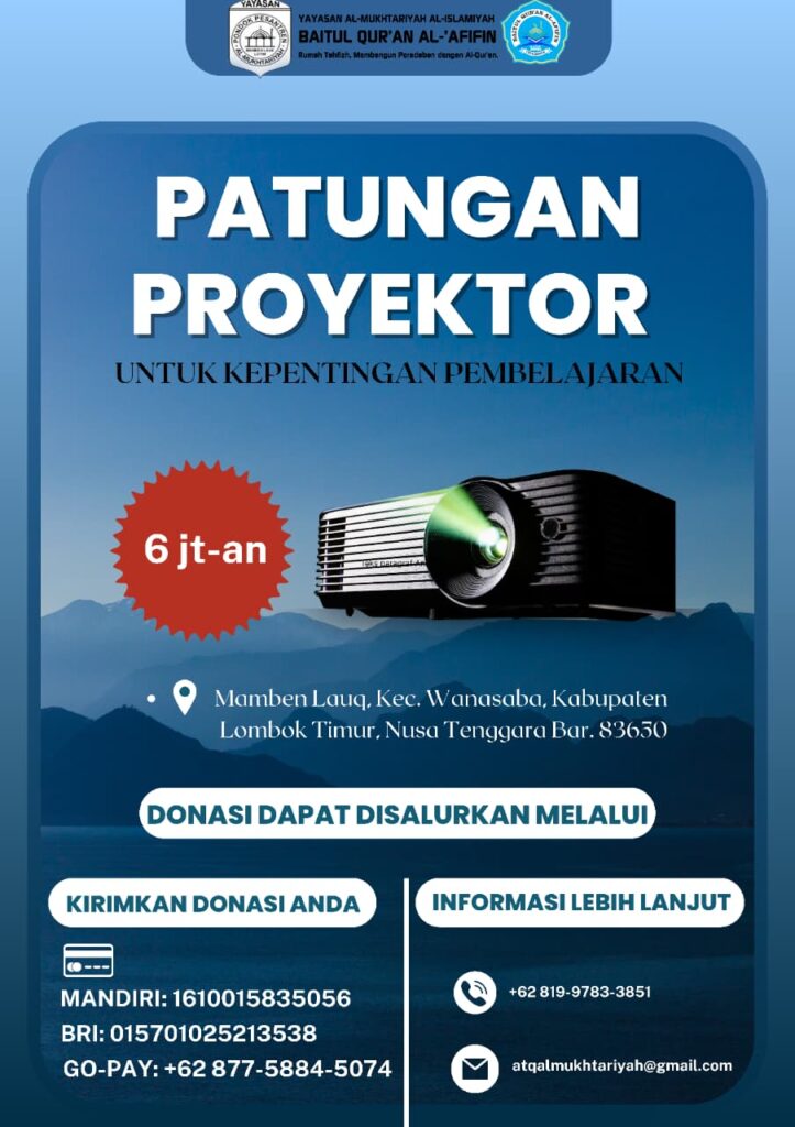 Kesempatan buat para Alumni/donatur untuk ikut bergabung beramal jariyah dalam pengadaan LCD Proyektor yang diperuntukkan kegiatan belajar Asrama Baitul Qur’an Al-Afifin Ymi Lengkok